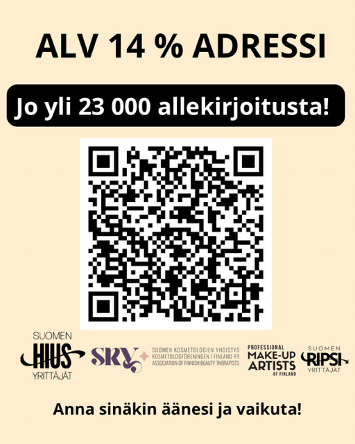 Suomen Kosmetologien Yhdistys ja Suomen maskeeraajat ry on jo mukana tekemässämme ALV 14 % -adressissa ja Shay, Suomen hiusalan ammattilaiset ja yrittäjät ry on myös antanut sille julkisesti tukensa